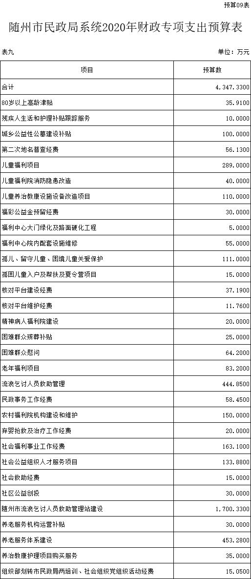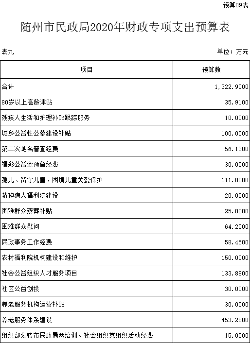 九、财政专项支出预算表