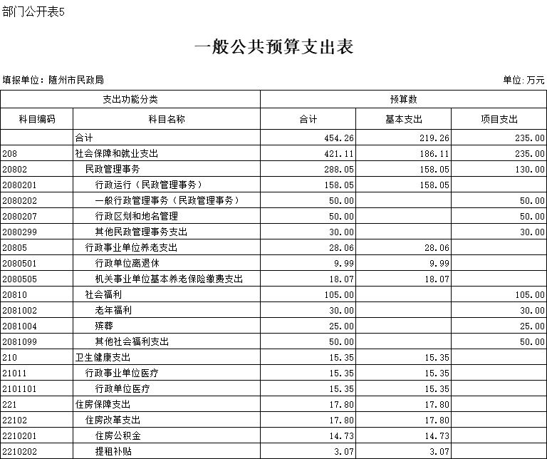 五、一般公共预算支出表
