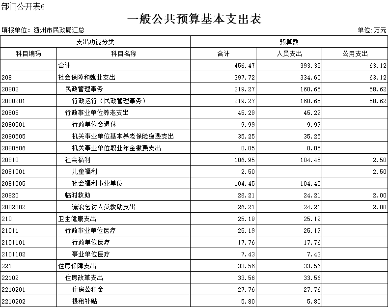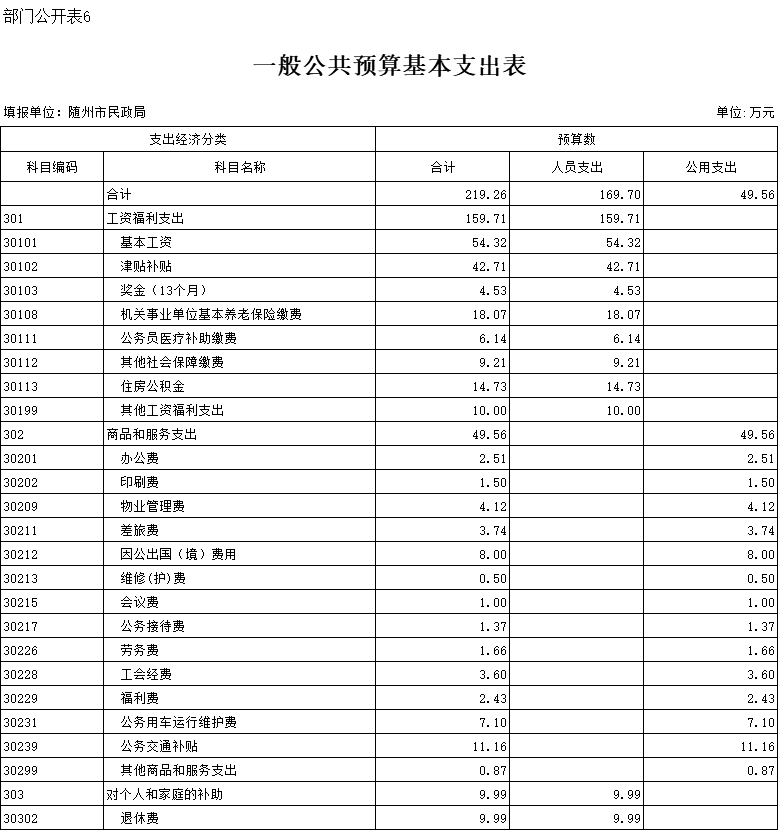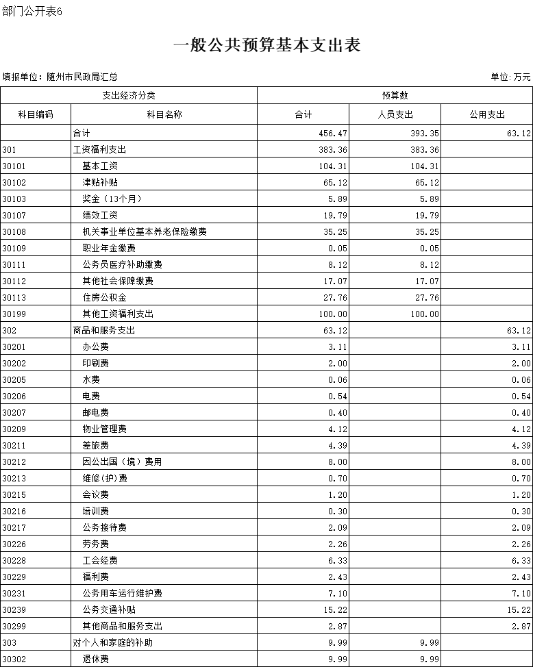 六、一般公共预算基本支出表