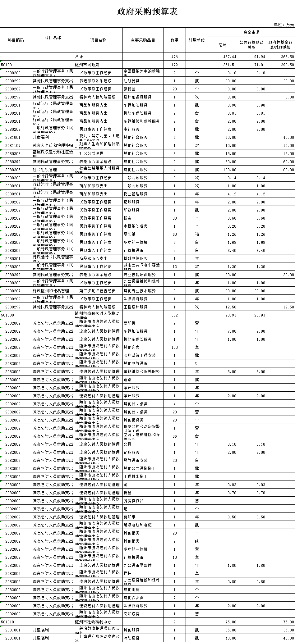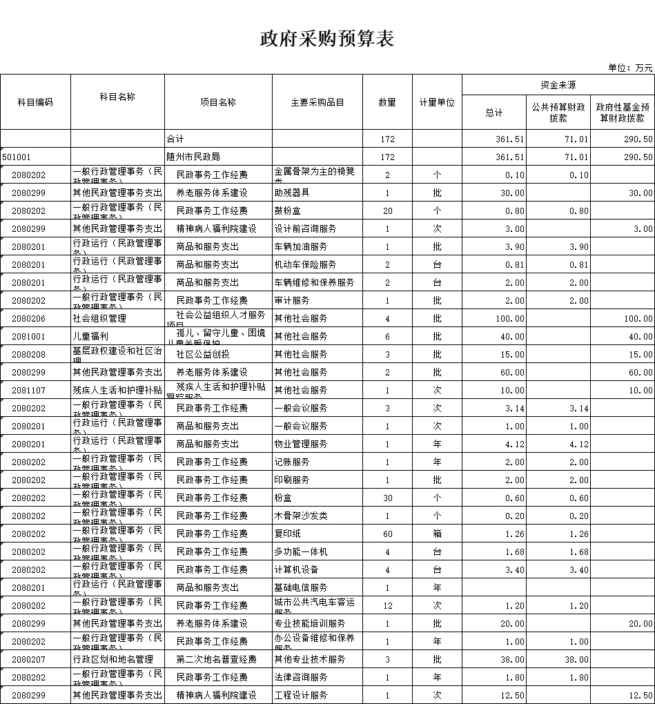 十、政府采购预算表