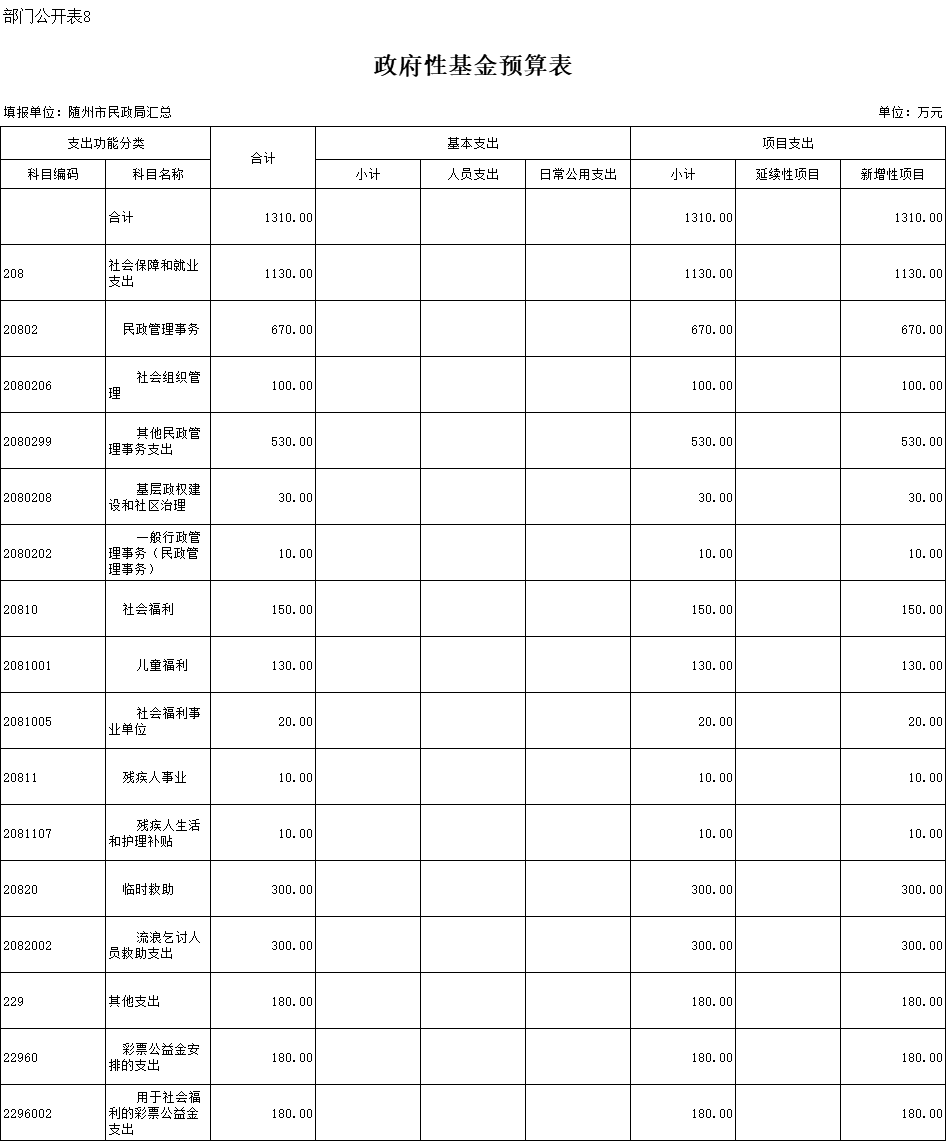 八、政府性基金预算支出表
