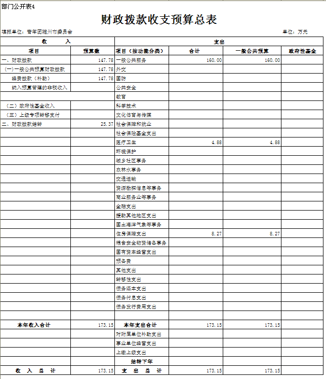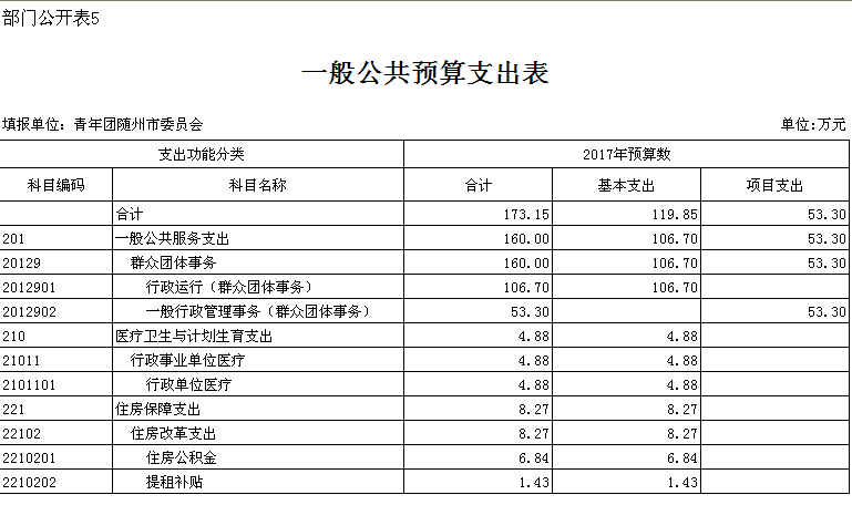 2017年财政拨款支出173.15万元,其中,一般公共服务支出160万元,医疗卫生支出4.88万元;住房保障支出8.27万元。