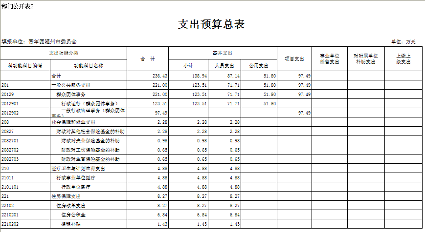 住房公积金(2210201):反映团市委机关公积金经费支出。