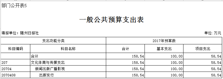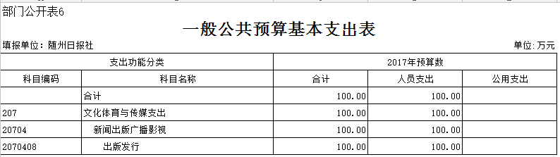 随州日报社2017年部门预算公开信息说明