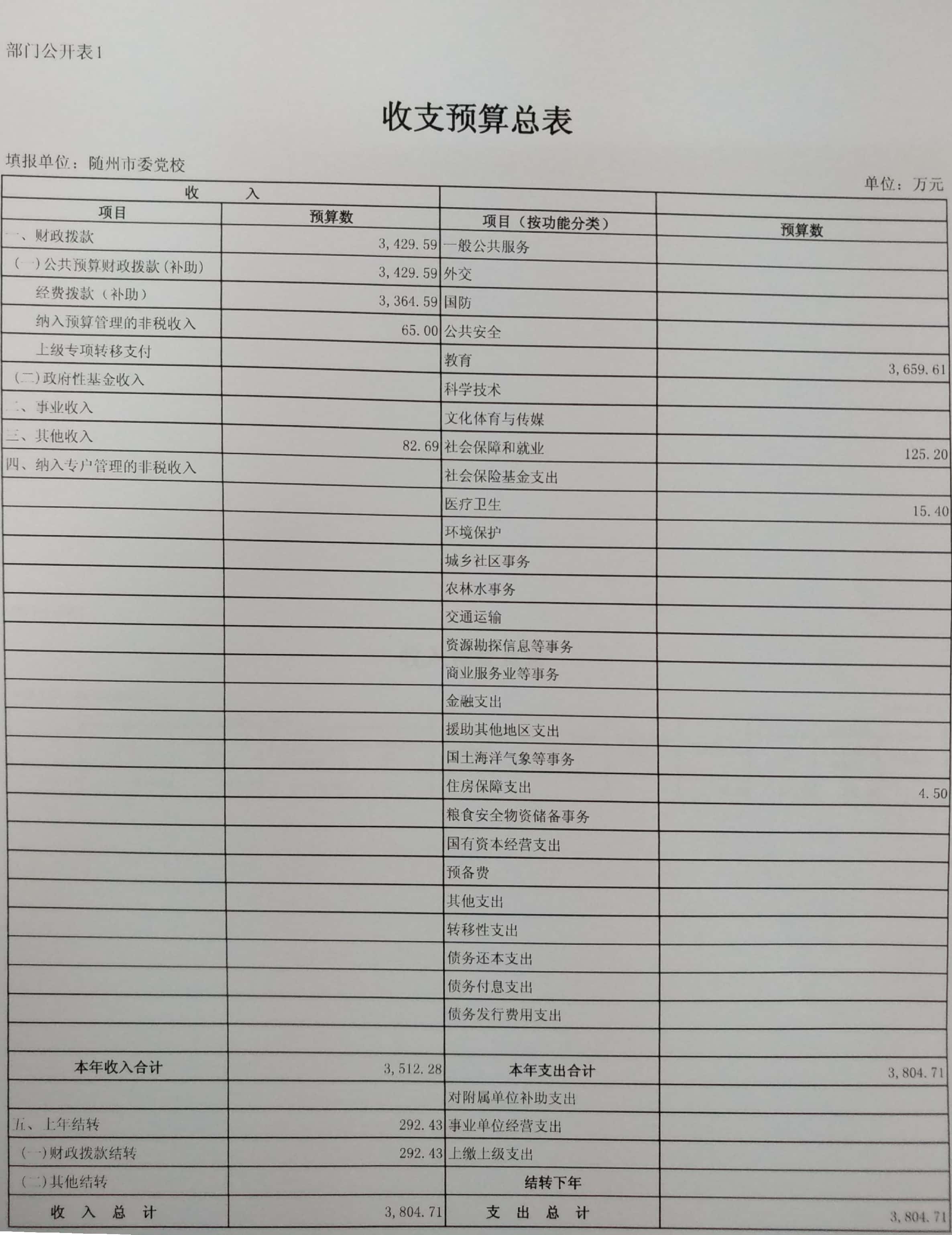 (一)收支预算情况