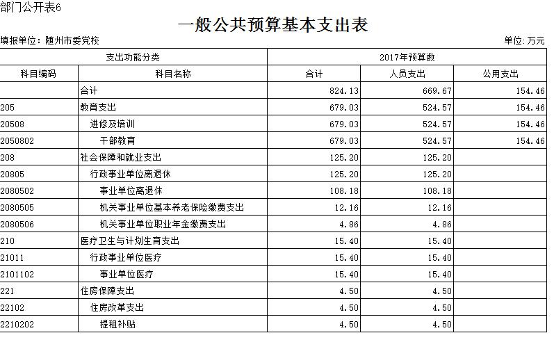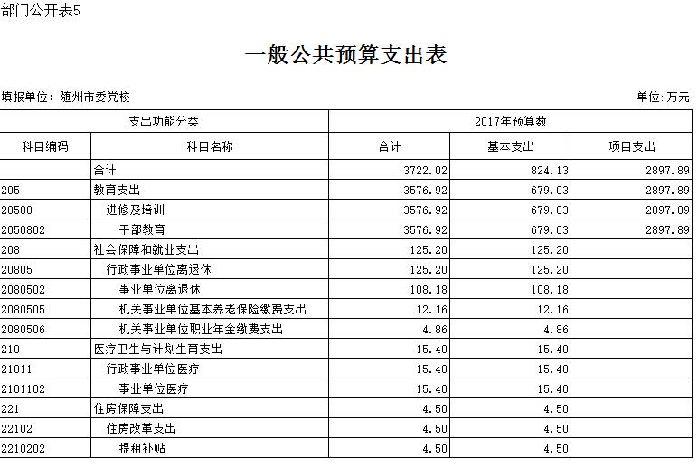 2017年财政对党校公共预算财政拨款为3804.71万元,其中经费拨款950.28万元,项目经费2854.43万元。新校区教学设备购置2500万元,智库建设10万元,干部培训173.96万元,教学业务九项经费139.78万元,公务员培训30.69万元。