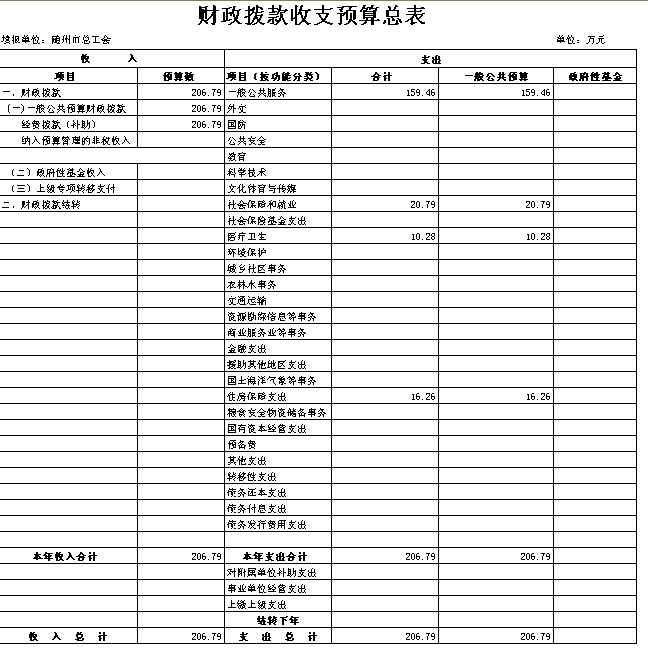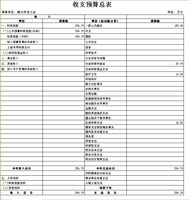 一、收支预算总表