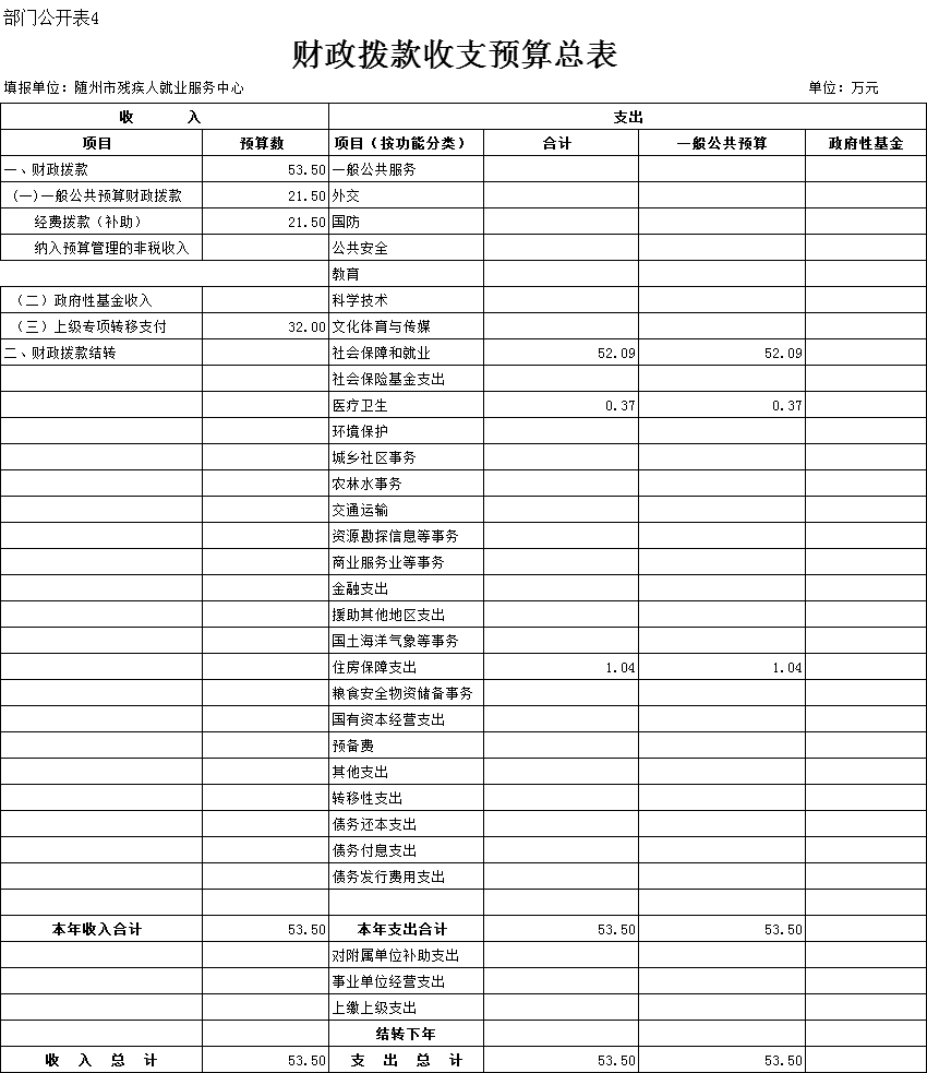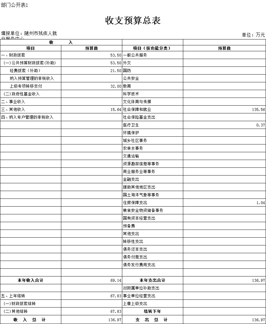 市残疾人就业服务中心2018年部门预算公开