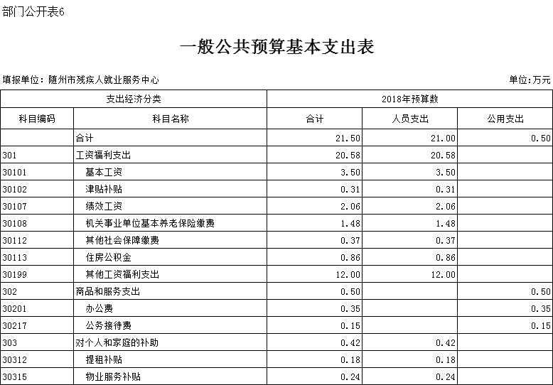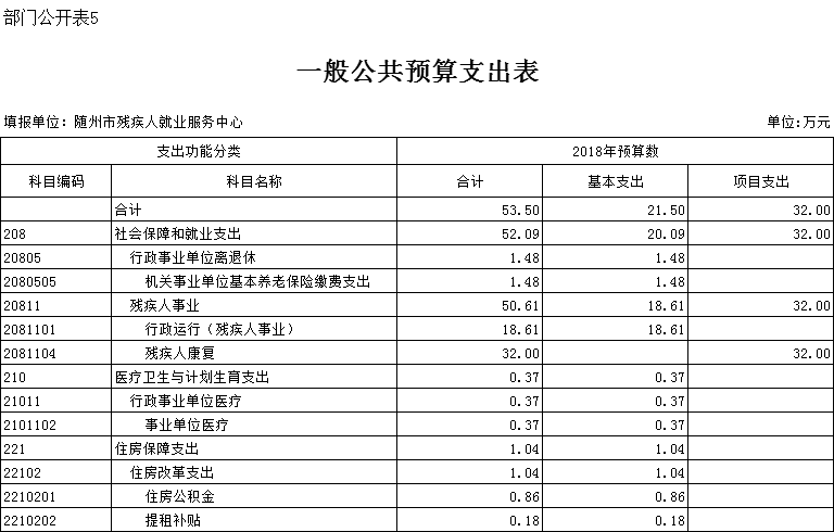 2018年部门预算公开表: