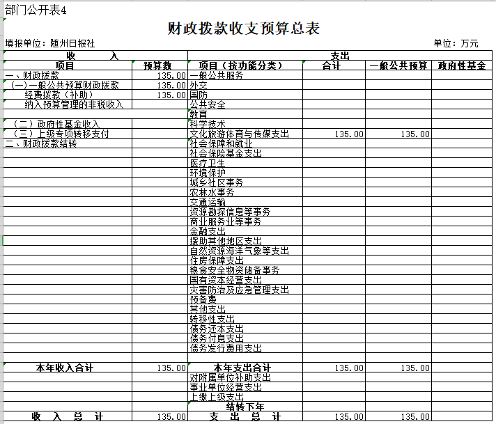 2019年随州日报社财政经费拨款支出预算总额为135万元,与上年数额相同。其中人员经费110万元,项目经费25万元。