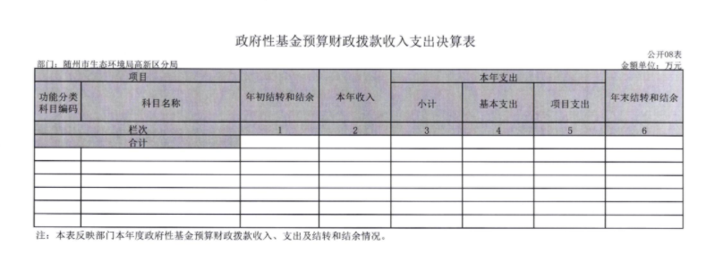 高新区分局2020年度因无政府性基金,所以“政府性基金预算财政拨款收入支出决算表”无数据。