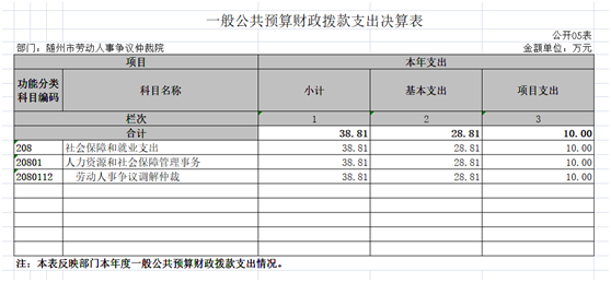 五、一般公共预算财政拨款支出决算表(公开表05表)