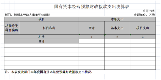 九、国有资本经营预算财政拨款收入支出决算表(公开表09表)