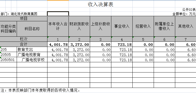 二、收入决算表(公开表02表)