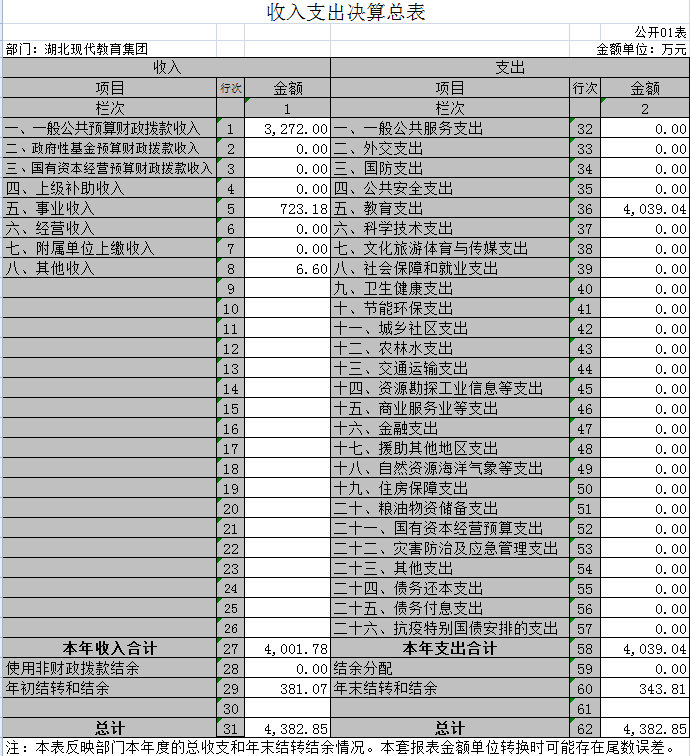 一、收入支出决算总表(公开表01表)