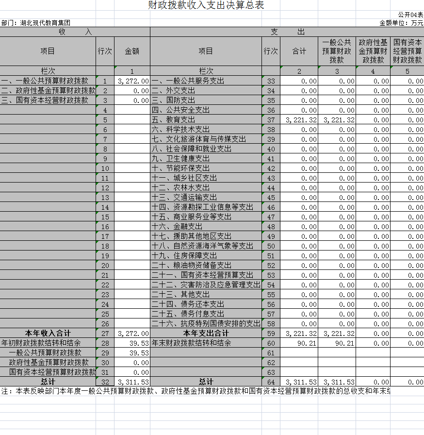 四、财政拨款收入支出决算总表(公开表04表)