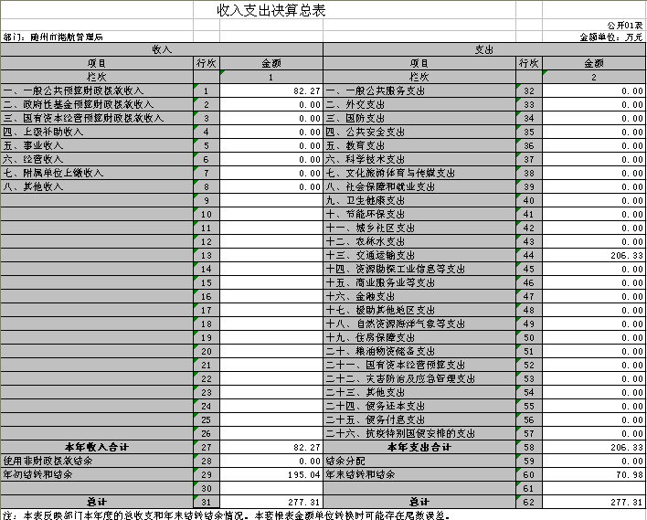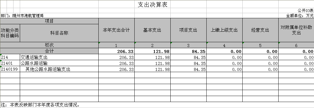 港航部门 第三部分2020年部门决算表(附决算公开表十张)