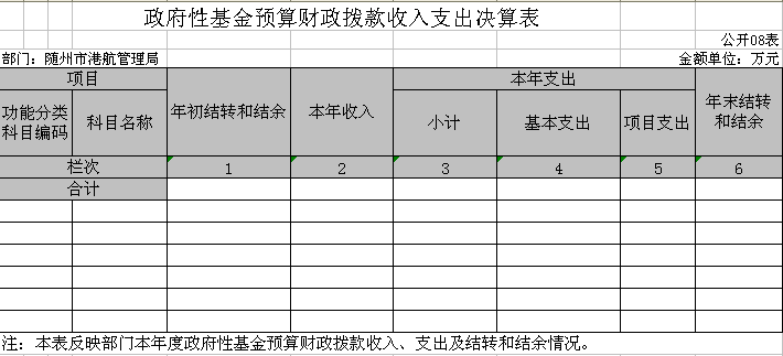 八、政府性基金预算财政拔款收入支出决算表(公开表08)
