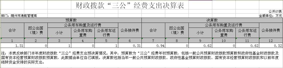 七、财政拨款“三公”经费支出决算表(公开表07表)
