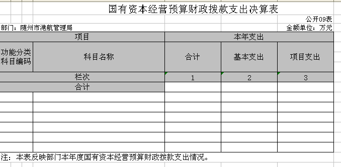 九、国有资本经营预算财政拨款支出决算表(公开表09表)