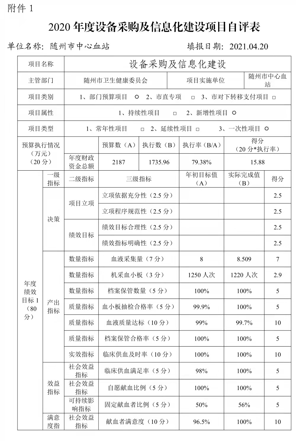 附件:2020年度设备采购及信息化建设项目自评表