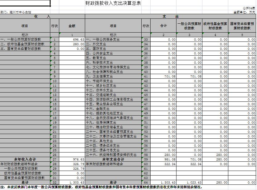 四、财政拨款收入支出决算总表(公开表04表)