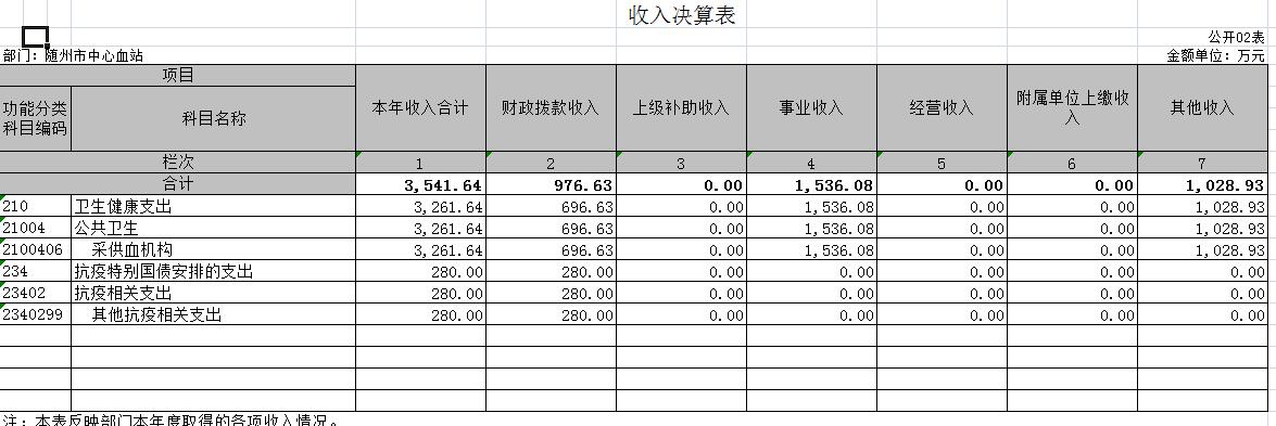二、收入决算表(公开表02表)