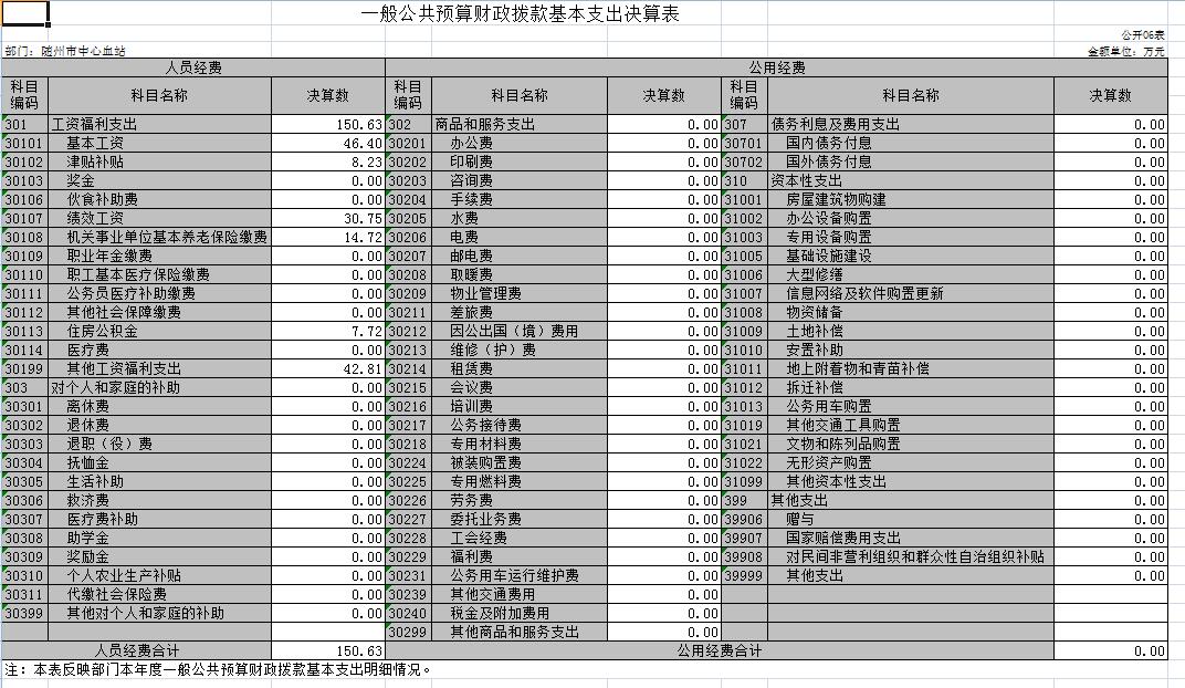 六、一般公共预算财政拨款基本支出决算表(公开表06表)