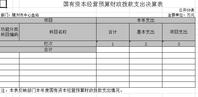 九、国有资本经营预算财政拨款收入支出决算表(公开表09表)