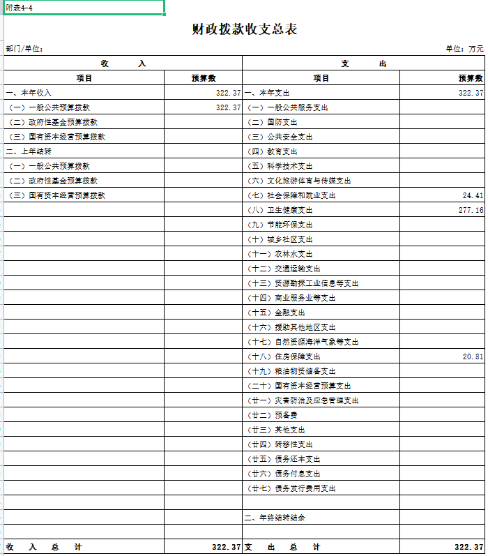 公开表4:财政预算拨款收支预算总表