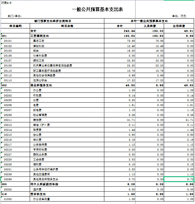 9.基本支出:指为保障机构正常运转、完成日常工作任务而发生的人员支出和公用支出。