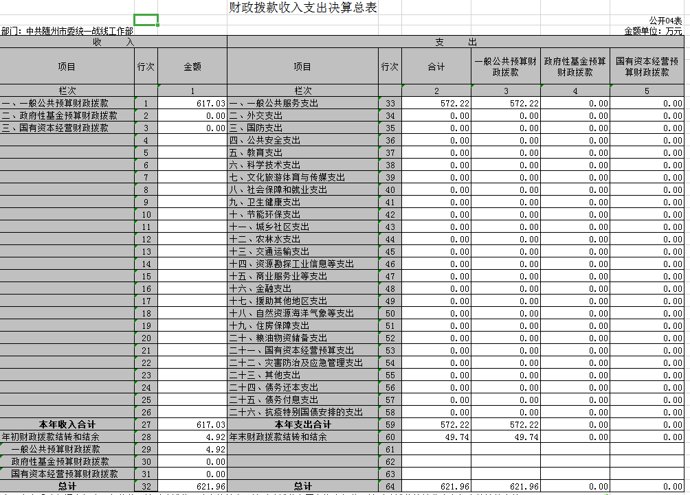 (一)收入支出决算总表