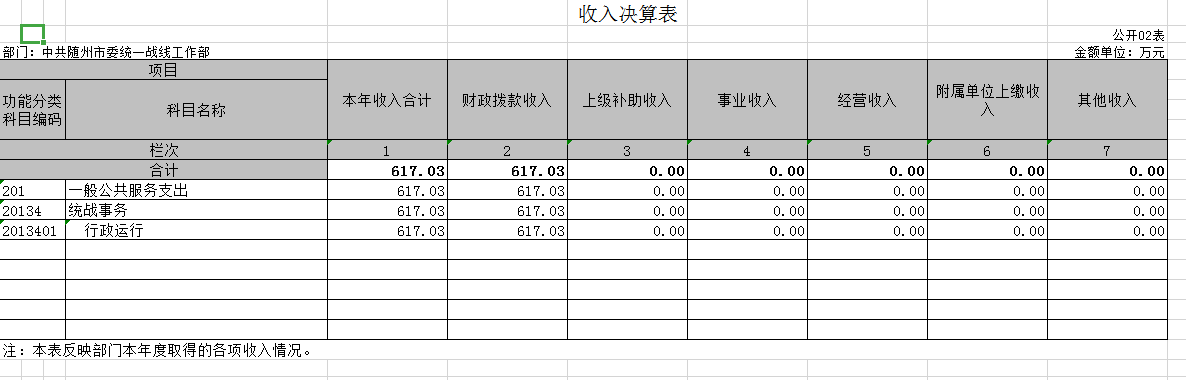 (二)收入决算表