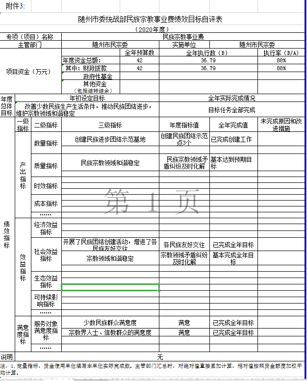 (九)2020年度绩效情况说明