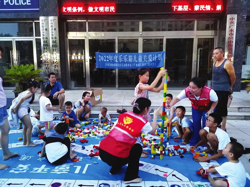 连日来,广水市义工联合会为留守儿童开办“乐乐箱计划”智力游戏班,培养孩子们团队合作、挑战自我的良好品质,锻炼孩子的智力、记忆力和协调能力,让孩子们在玩乐中学习。图为孩子们在应山街道双桥社区开展游戏活动的情景。