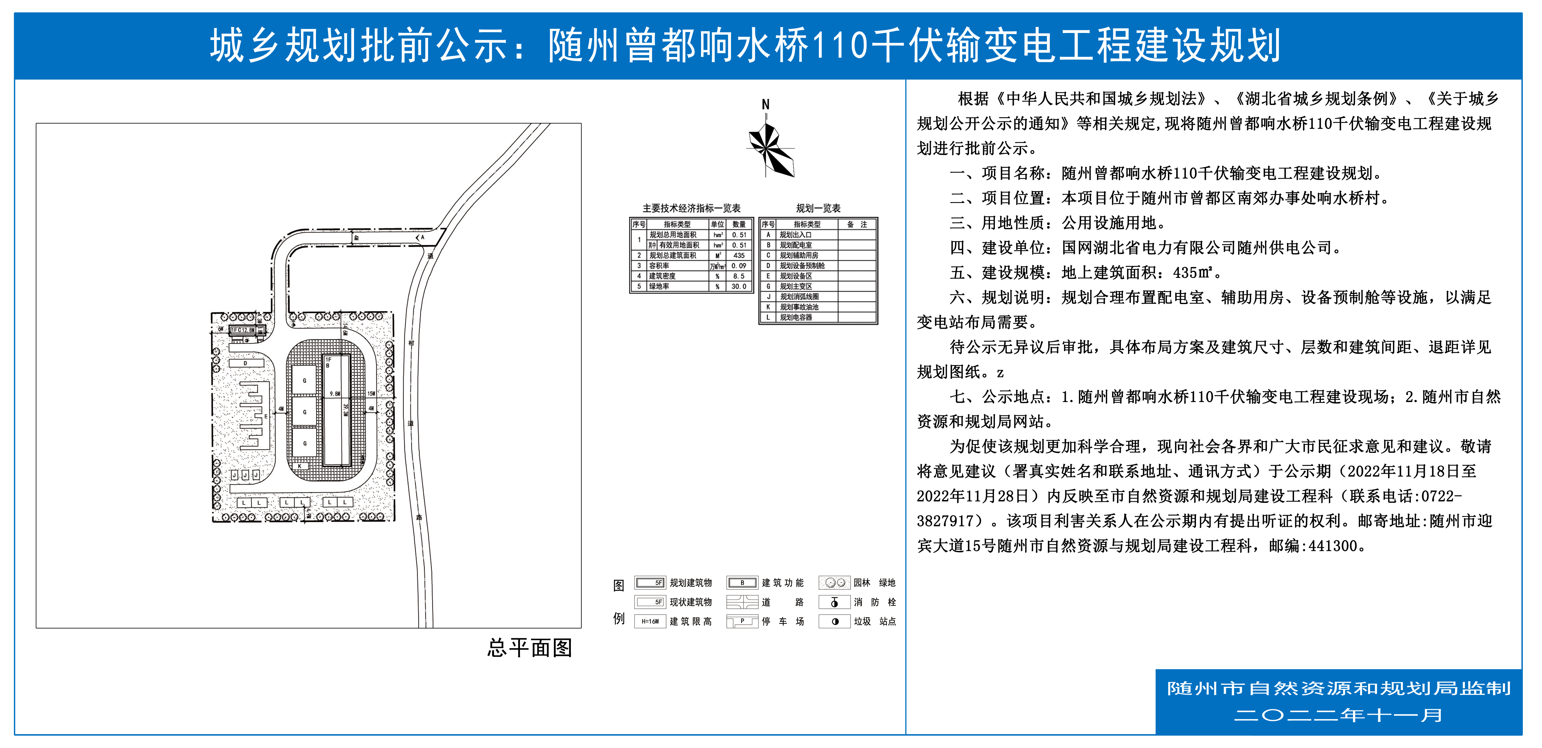 随州曾都响水桥110千伏输变电工程建设规划批前公示